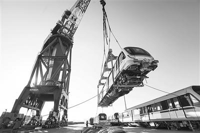 出口新加坡的地鐵車廂12月25日在遼寧營口港裝船外運(yùn) 記者 白雪騏攝